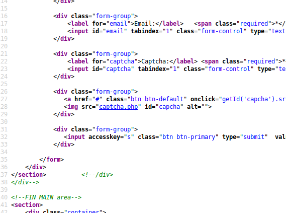 Now the captcha image wasn’t loading, no problem , let us take a look at the page source: