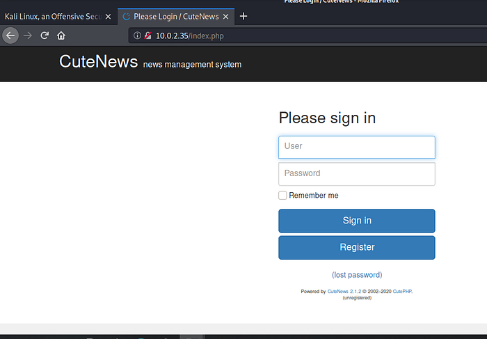 I tried some default creds , did not work, so I tried registering myself:-