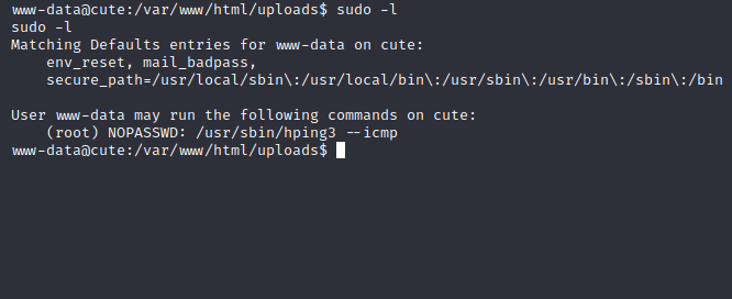 Interesting, hping3 has a command interface per my knowledge, let us try to leverage that into root privileges: