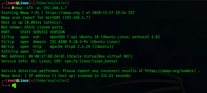 Here we have the ip address which is 192.168.1.7, Now its time for nmap scan