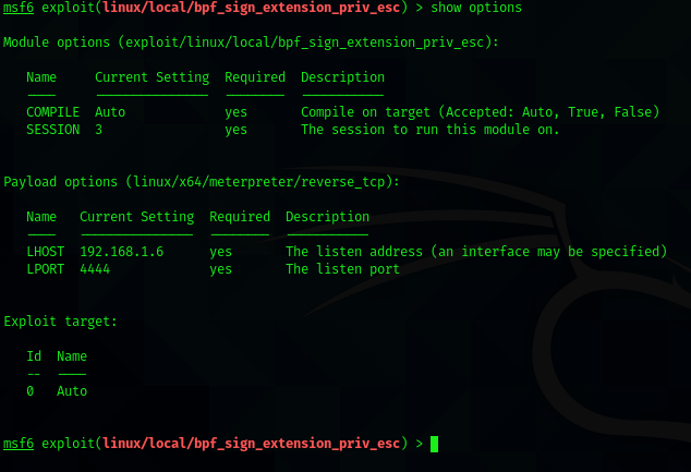 I found the exploit at “exploit/linux/local/bpf_sign_extension_priv_esc”