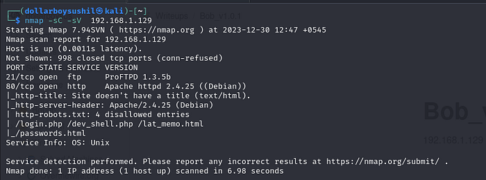Link to Vulnhub: https://www.vulnhub.com/entry/bob-101,226/