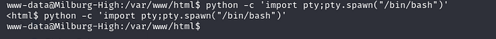 Run python -c ‘import pty;pty.spawn(“/bin/bash”);’ to upgrade the shell.