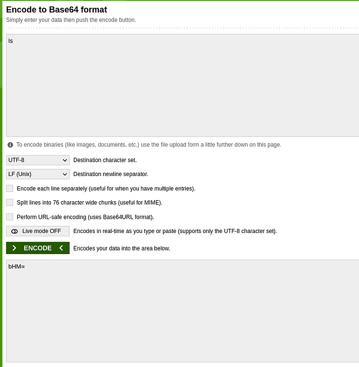 Then to run this command we will do echo bHM= | base64 -d | bash