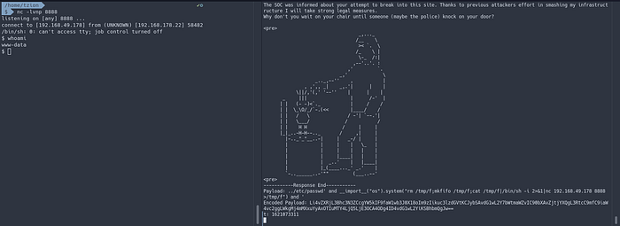 ../tmp/outputI setup a netcat listener on port 8888 and run the script :