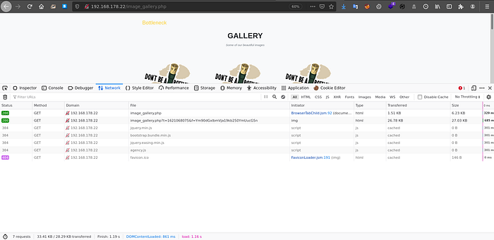 At first i thought that this page doesn’t vulnerable. But by looking at the Network section, i found out every time i refresh the page, there will be a GET request going out with parameter t and f.