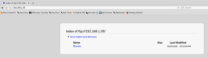 The service is setup to allow for anonymous authentication with access to view a folder called “public”. Using my web browser, I can view the public directory:
