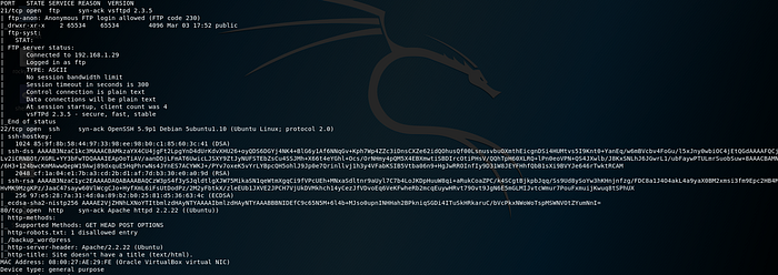 nmap -O -A -sT -sV -p- -T5 192.168.1.39 -vvvWe find out there are 3 services running: FTP, SSH, and a web service:
