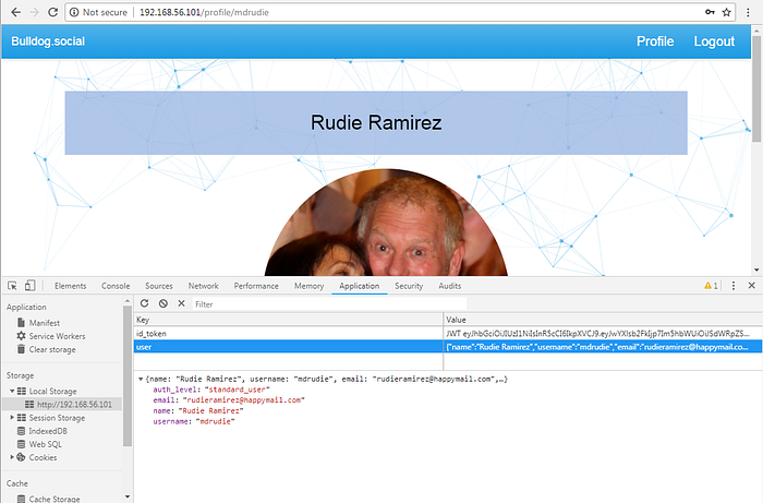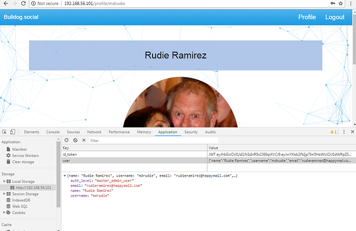 Using the compromised credentials, I logged into the application as “mdrudie”. On using the browser debug tools, I was able to figure out that a JWT token was assigned to the logged in user and his privilege levels were stored in the HTML5 Local-storage.