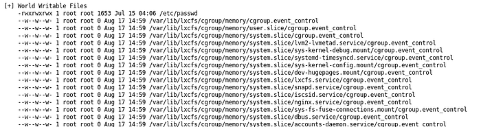find / \( -wholename '/home/homedir/*' -prune -o -wholename '/proc/*' -prune \) -o \( -type f -perm -0002 \) -exec ls -l '{}' ';' 2>/dev/nullPress enter or click to view image in full size