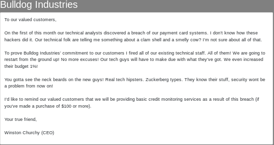 Database: sarah@bulldogindustries.com<br><! — d8b8dd5e7f000b8dea26ef8428caf38c04466b3e →