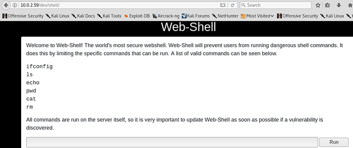 There was nothing much in admin page so I browsed to /dev/shell and this time I accessed the webshell.