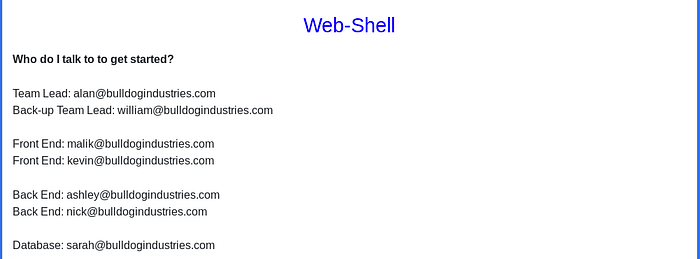 At the bottom of the page. There was mail addresses of some users and a link called “Web Shell”.