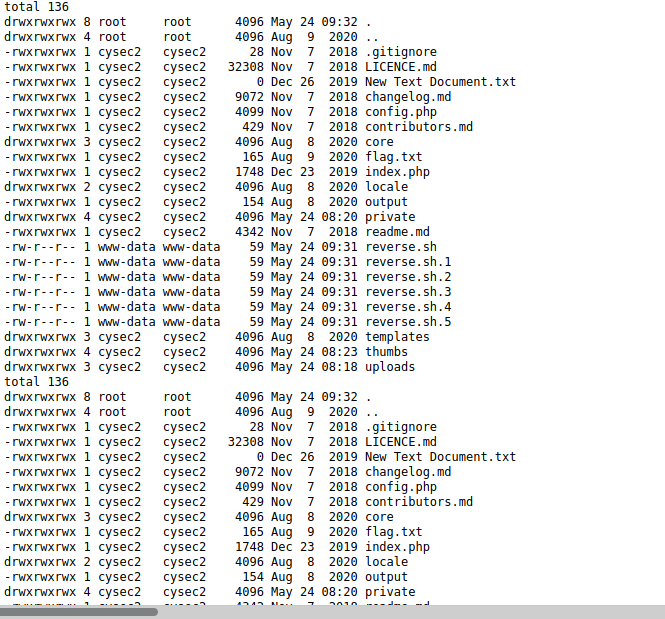If we look at the flag.txt file, we can find the password for cysec2.