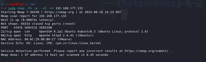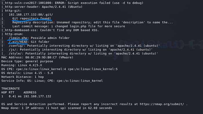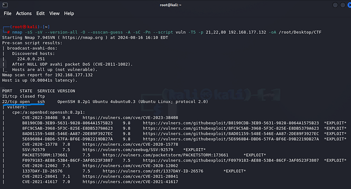 nmap -sS -sV - version-all -O - osscan-guess -A -sC -Pn - script vuln -T5 -p- 192.168.177.132 -oA /root/Desktop/CTFPress enter or click to view image in full size