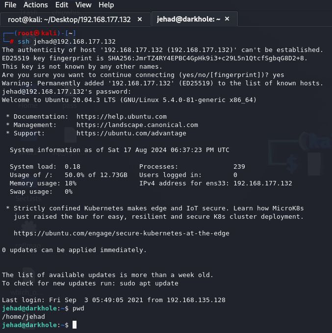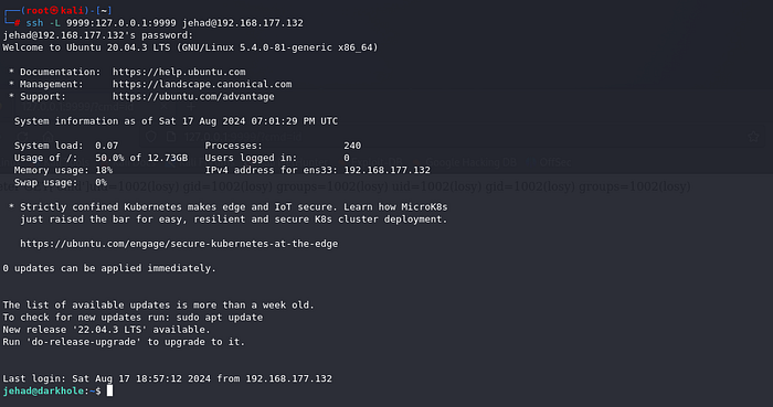 ssh -L 9999:127.0.0.1:9999 jehad@192.168.177.132Press enter or click to view image in full size