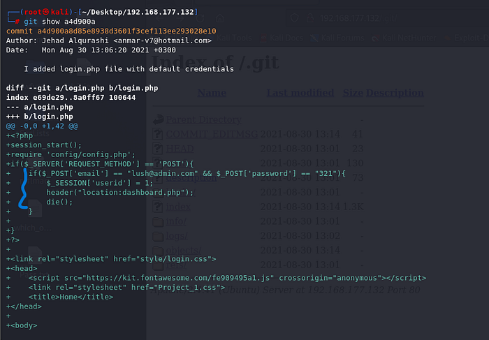 Now to target, we had the login page, the found git folder directory, and ssh service on hand.