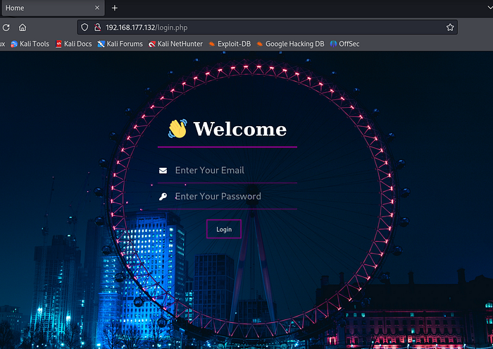 Looking at the page website, we discovered nothing valuable other than the login page we’d found earlier.