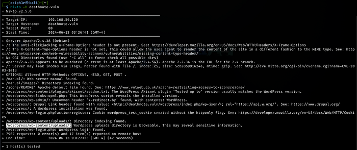 The webpage is run on WordPress, there’s a specific tool to scan WordPress webpages, called wpscan