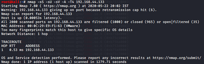 So based on this failure I thought that might be there is an application here that might be blocking Nmap probes from hitting. I tried by random scans, fragments and even by other techniques to avoid a firewall.So what I actually got was a result for UDP ..Luckily !