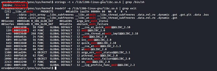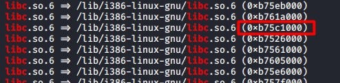 Next is knowing the memory address of libc library. This can be done by running ldd for our application. We observe the address changes, but its not so different , and even sometimes the same memory addresses are used. So bruteforce is possible. And also, we need the location of exit, system and the /bin/sh string inside the libc library.