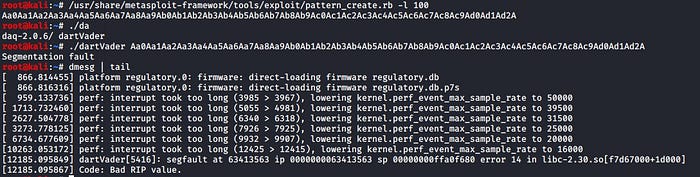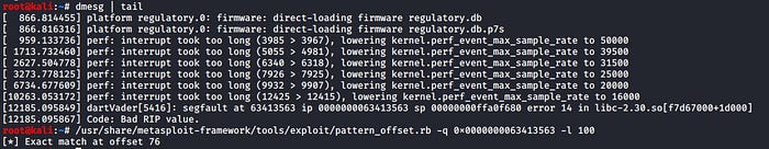 So first finding the offset, that is the number of bytes we have to fill before overwriting an instruction pointer. A lot of scripts on metasploit.