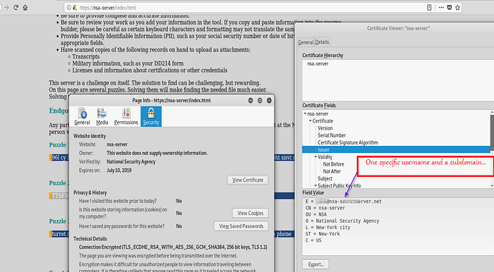 It´s a good idea to take a look at the certificate and see if we can find any useful information.