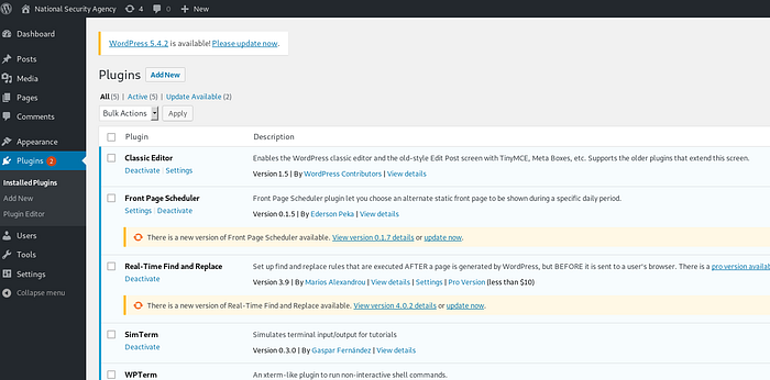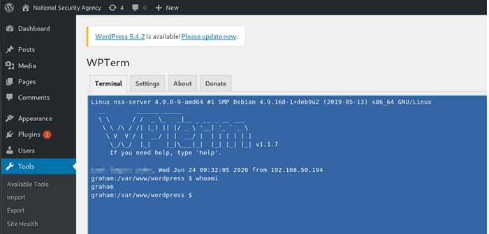 Also to be able to scan the web site, you need to tell wpscan to avoid ssl-check by this command: wpscan — url https://nsa-xxxx.net/ — disable-tls-checks