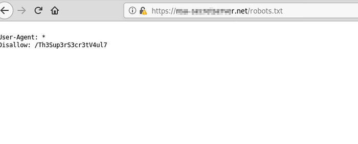 Browsing to the webpage and there is a robots.txt: