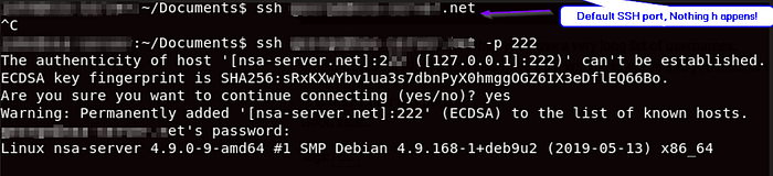 ssh USERNAME@HOSTNAME -p 222