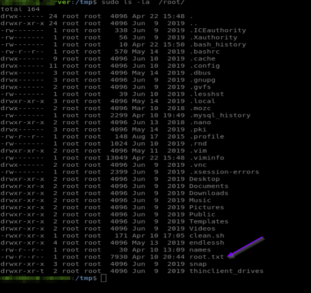 And I´m able to run sudo commands to list the /root directory: