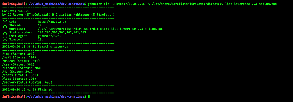 lets fire up you gobuster to check hidden directories…..