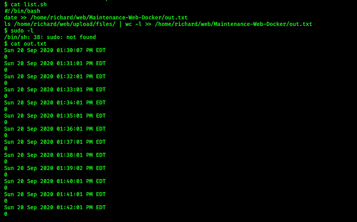 here i saw script list.sh which is writable, and after opening it i found that it is a bash script written the out.txt, lets check out.txt file
