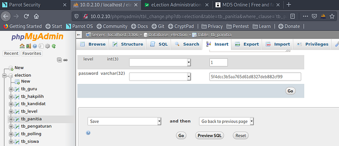 Now the password in the phpmyadmin database seemed to be encrypted by md5. Long story short, tried cracking it ,couldn’t ,so I just added my own encrypted password using the word “password” .