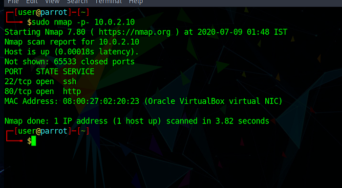 As usual we start with the full port scan . Results are as shown below