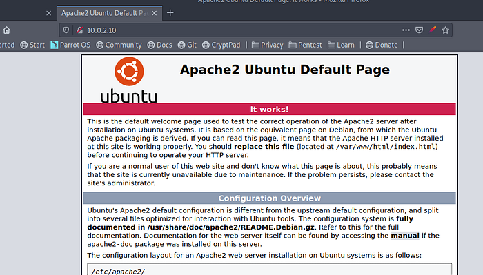 Navigating to port 80, we get the default apache page