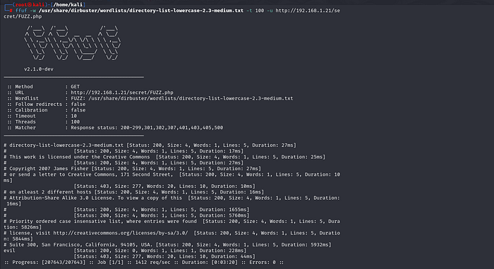 ffuf -w /usr/share/wordlists/directory-list-lowercase-2.3-medium.txt -t 100 -u http://192.168.1.21/secret/FUZZ.php