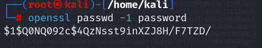 which allowed me to create a hash of the word "password" that I could use when formatting my new user entry in the file.