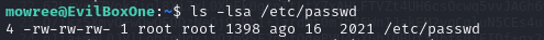 After examining various SUIDs, GUIDs, and other elements, I ultimately observed that the “/etc/passwd” file possessed read and write permissions..