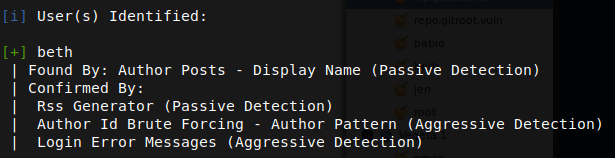 Let’s use wpscan since there is a WordPress inside here. We found another possible user beth and there is nothing more inside there