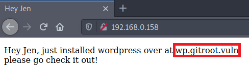 We found a possible user Jen and a domain wp.gitroot.vuln and let’s enumerate more if there is another domain that can be found! We can use Gobuster for this. Please add the domain in /etc/hosts