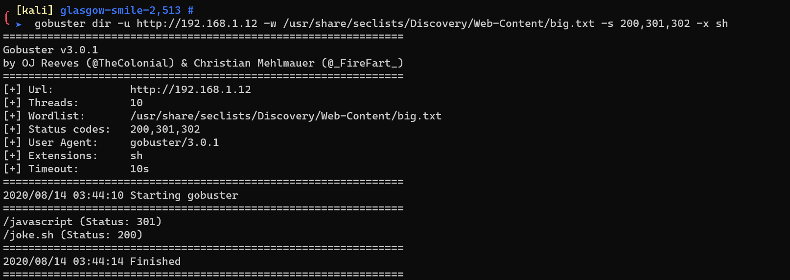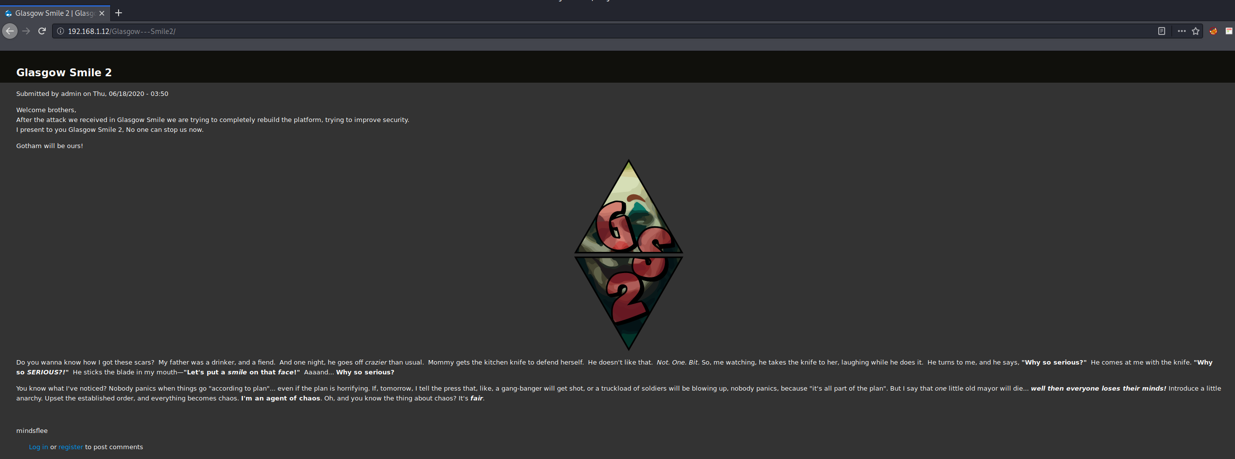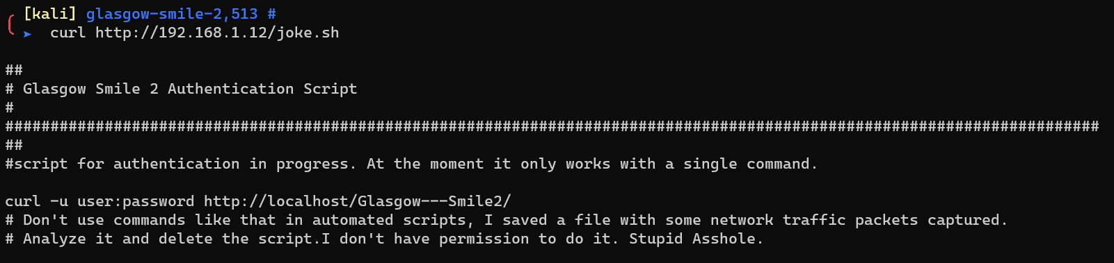http://192.168.1.12/joke.sh reveals http://192.168.1.12/Glasgow---Smile2/: