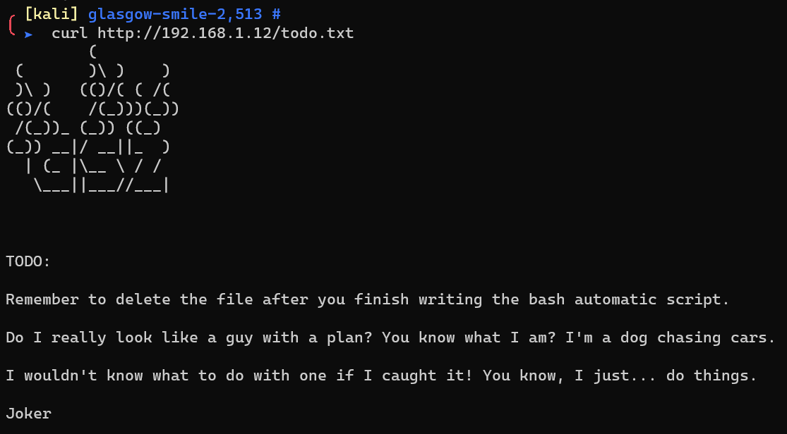 http://192.168.1.12/todo.txt reveals there’s a bash script: