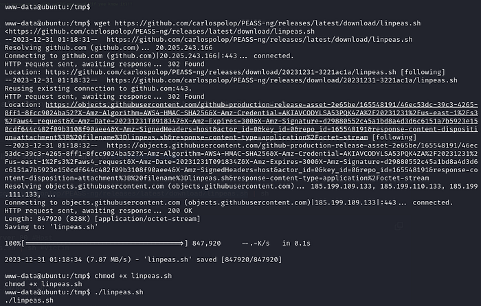 Go to /tmp directory, and download the script using wget , then make script executable using chmod +x linpeas.sh
